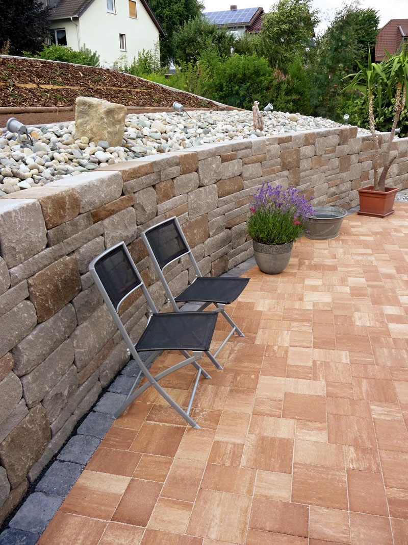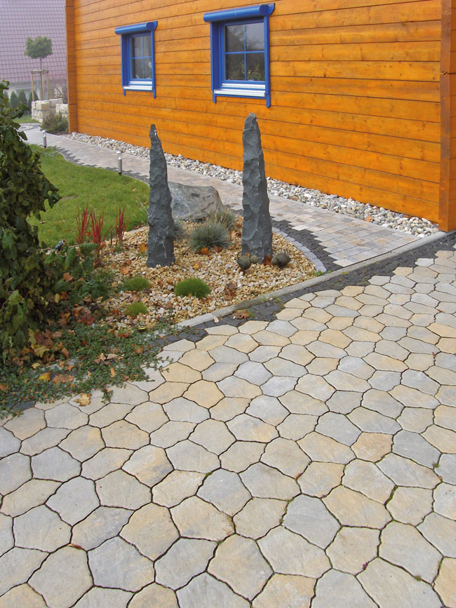 Um die Belastungsfähigkeit zu erhöhen, lassen sich die Terrassenplatten dank der vielfältigen Eigenschaften auch ideal mit unseren Pflastersteinen kombinieren.